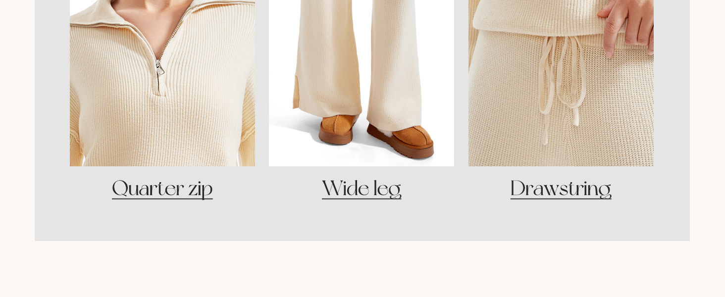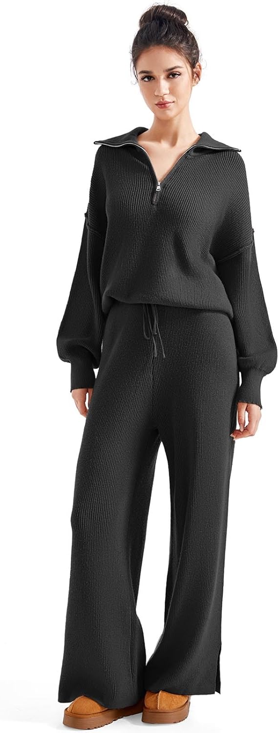 - u003Cliu003Eu003Cspan class=u0022a-list-item a-size-base a-color-baseu0022u003ECloud Knit Sweater Sets: Two piece casual matching sets, Classy basic fall outfits, Soft cozy knit lounge setsu003C/spanu003Eu003C/liu003E u003Cliu003Eu003Cspan class=u0022a-list-item a-size-base a-color-baseu0022u003EOversized Quarter Zip Pullover: Half zip up long sleeve sweater shirts, Classy drop shoulder collaru003C/spanu003Eu003C/liu003E u003Cliu003Eu003Cspan class=u0022a-list-item a-size-base a-color-baseu0022u003EFlowy Wide Leg Lounge Pants: Elastic high waisted knit pants with drawstring, Side split detailsu003C/spanu003Eu003C/liu003E u003Cliu003Eu003Cspan class=u0022a-list-item a-size-base a-color-baseu0022u003EOccasions: Perfect as casual outfits, loungewear sets, going out sets, travel outfits, airport outfitsu003C/spanu003Eu003C/liu003E u003Cliu003Eu003Cspan class=u0022a-list-item a-size-base a-color-baseu0022u003ESize: (Our size chart) XS=US 2, S=US 4, M=US 6, L=US 8, XL=US 10u003C/spanu003Eu003C/liu003E